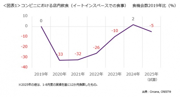 コンビニイートインの食機会数、2025年は5%減の見込み