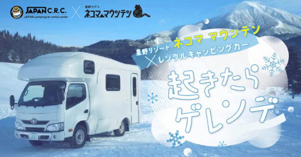 国内レンタルキャンピングカー大手「ジャパンキャンピングカーレンタルセンター(以下 JAPAN C.R.C.)https://japan-crc.com/」を運営するキャンピングカー株式会社(本社:東京都渋谷区、代表取締役社長:頼定 誠)は、星野リゾート ネコマ マウンテン(福島県磐梯町)と提携し、キャンピングカーレンタルとゲレンデ目の前の専用駐車場での車中泊をセットにした特別プラン「起きたらゲレンデ」を、2025-2026シーズンの予約を2025年11月5日に販売を開始いたしました。