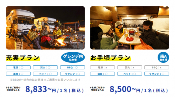 ● お手頃プラン(軽キャン・平日1泊2日): 48,000円(税込)~