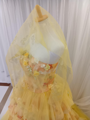 沖縄ビューティー&ブライダル専門学校は、2025年11月1日(土)のオープンキャンパスにて、FABRIC SHOP MINAMI様ご協力のもと、花織技法を用いた「手花織りウエディングベール体験」企画を実施いたしました。