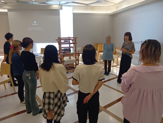 当日は、高校生が織り機でウエディングベールの手織り体験を行い、沖縄の伝統文化に触れながらブライダルの世界をより身近に感じる機会となりました。