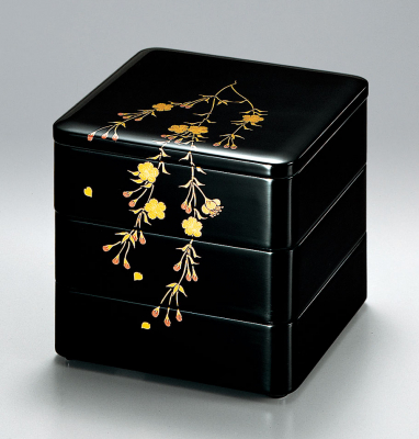 日本の伝統工芸「越前漆器」の技が光る、華やかなしだれ桜の三段重。