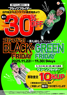 特典 :1.店内指定中古クラブが最大30%OFF(ブラックフライデーのプライスカードが目印)