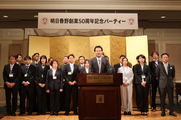 創業50周年をきっかけにさらなる発展を目指すにあたり、2025年11月7日(金)、「明日香野創業50周年記念パーティー」を大阪府・大阪市のホテル「ザ・リッツ・カールトン大阪」にて開催いたしました。