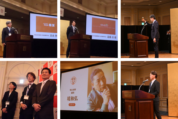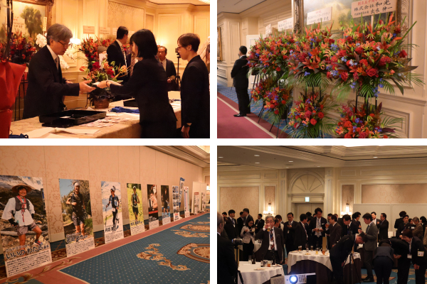 パーティー会場には、創業当時からの歴史を伝えるパネルやお客様からの声を記したオブジェ、明日香野がサポートするアスリートを紹介するパネルなどが展示され、来場者の目を引きました。