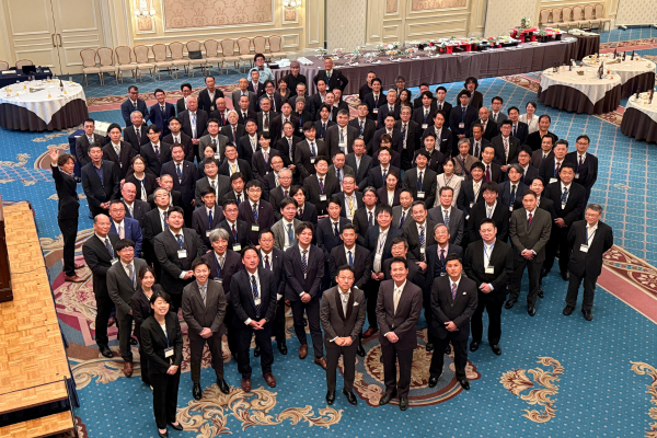 社員、取引先企業様やグループ会社などの約100名が出席。節目を祝うとともに、時代の変化に合わせて対応する柔軟さ、新たな挑戦を続けるチャレンジ精神といった「3つの遺伝子」「4つの力」を武器に、次の50年もさらに成長を遂げるための企業像を示しました。
