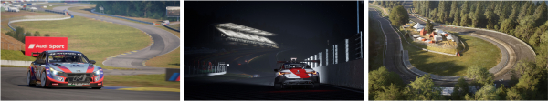 Porsche、BMW、Audi、Mercedes-AMG、Hyundai、Praga といったメーカーの公式車両、Monza、スパ・フランコルシャン、ニュルブルクリンク、富士スピードウェイ、ロードアトランタなどの有名トラックを収録。フォトグラメトリーと高精度物理エンジンにより、細部までリアルに再現されています。