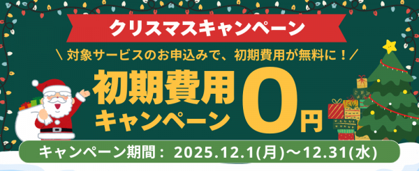 クリスマスキャンペーンでは、Winserverの対象サービスにお申込みいただくと、初期費用を無料とさせていただきます。
