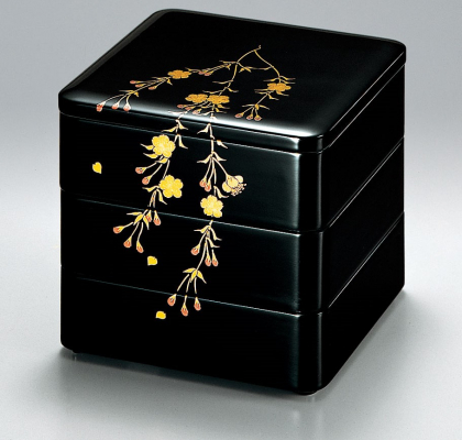 日本の伝統工芸「越前漆器」の技が光る、華やかなしだれ桜の三段重。