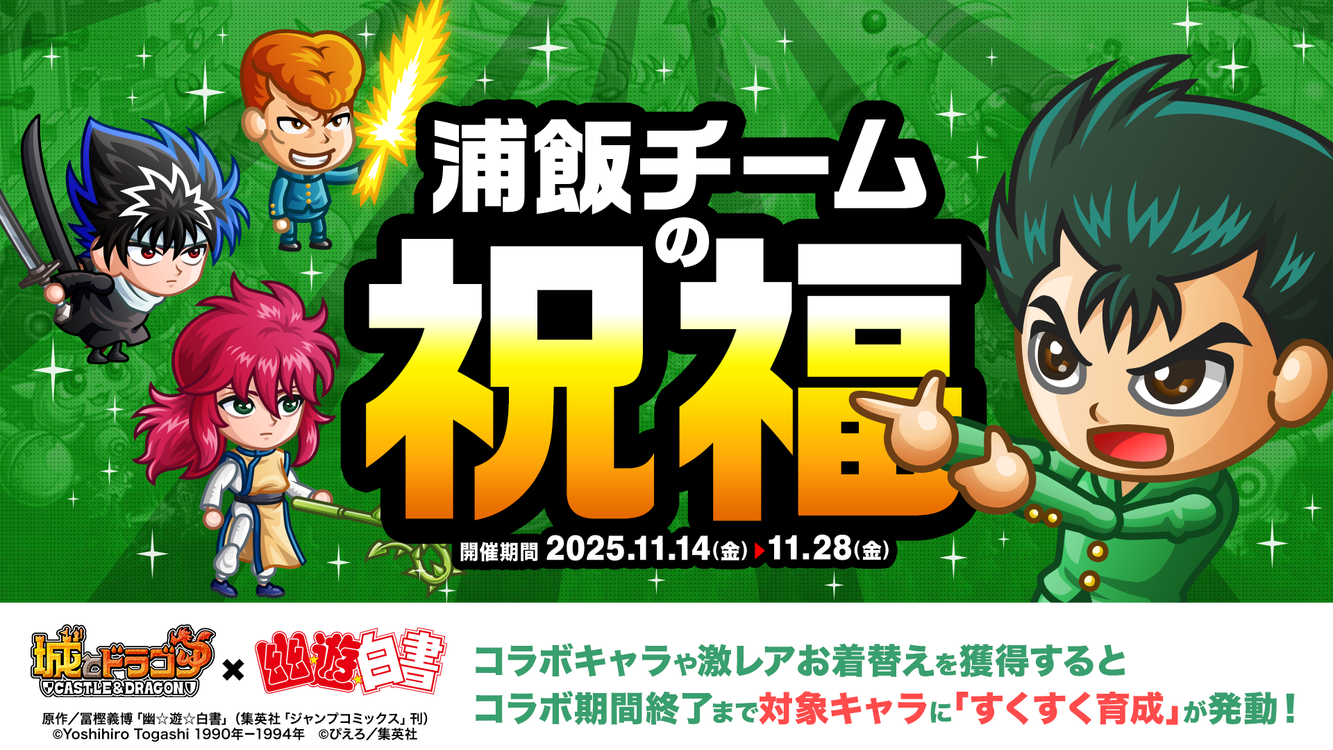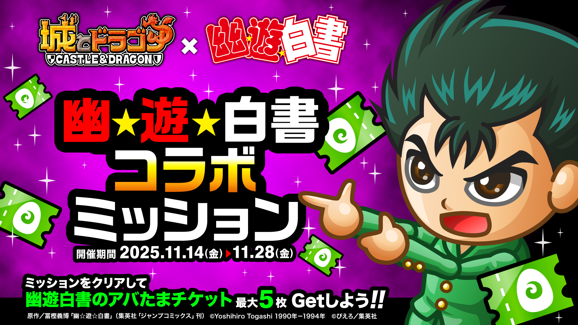 株式会社アソビズム(本社:東京都千代田区、代表取締役:大手智之)は、App Store・Google Playにて好評配信中の『城とドラゴン』で、TVアニメ『幽☆遊☆白書』との復刻コラボイベントを、2025年11月14日(金)より開催いたします。