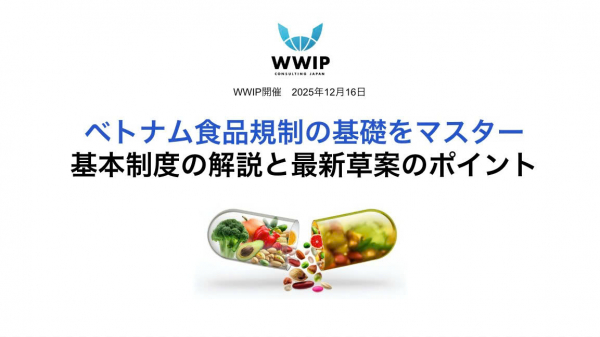 株式会社ワールドワイド・アイピー・コンサルティングジャパン (以下「WWIP」) は、2025年12月16日(火)14:00~16:30に、「ベトナム食品規制の基礎をマスター:基本制度の解説と最新草案のポイント」を開催いたします。