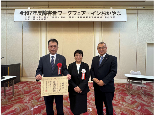 この度、津山障害者就業・生活支援センターからご推薦いただき、これらの継続的な取り組みが高く評価され、受賞につながりました。