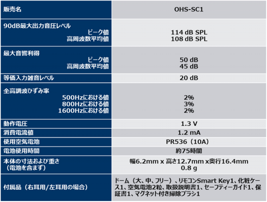 ・型 番 : OHS-SC1L(左耳用)、OHS-SC1R(右耳用)、OHS-SC1KIT(両耳用)