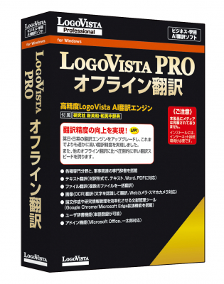 ロゴヴィスタ株式会社は、「LogoVista PRO オフライン翻訳」を、パソコンショップ、カメラ系量販店、大手書店、ダウンロード販売サイトなどで発売中です。