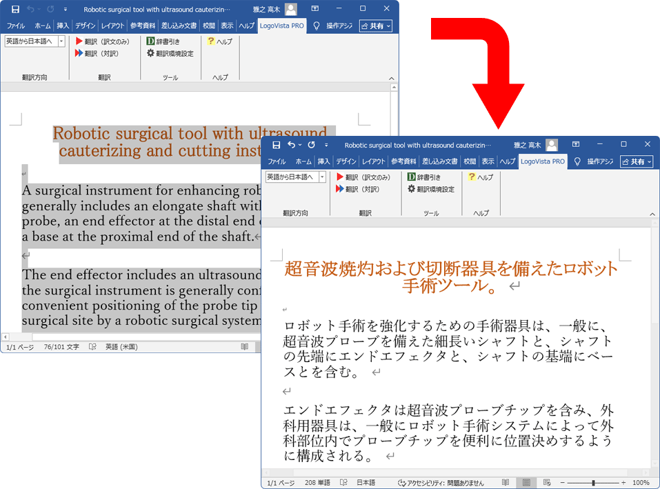 洗練されたインターフェースにより直感的に操作でき、初めて翻訳ソフトを使う方から実務で活用される方まで、幅広いニーズにお応えします。