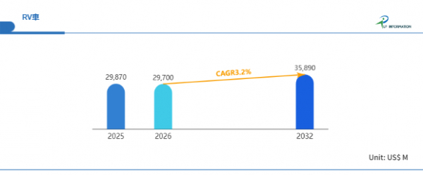 LP Information調査チームの最新レポートである「世界RV車市場の成長予測2026~2032」(https://www.lpinformation.jp/reports/581618/recreational-vehicle)によると、2025年から2031年の予測期間中のCAGRが3.2%で、2031年までにグローバルRV車市場規模は358.9億米ドルに達すると予測されている。