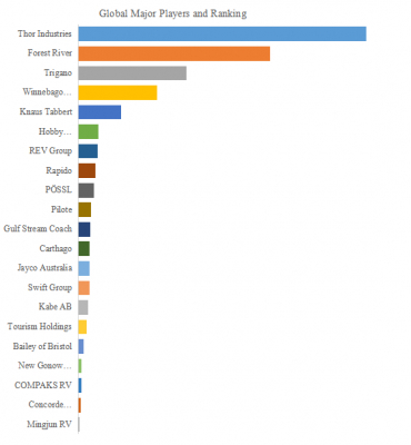 LP Informationのトップ企業研究センターによると、RV車の世界的な主要製造業者には、Thor Industries、Forest River、Trigano、Winnebago Industries、Knaus Tabbert、Hobby Wohnwagenwerk、Rapido、REV Group、PÖSSL、Piloteなどが含まれている。2024年、世界のトップ10企業は売上の観点から約85.0%の市場シェアを持っていた。