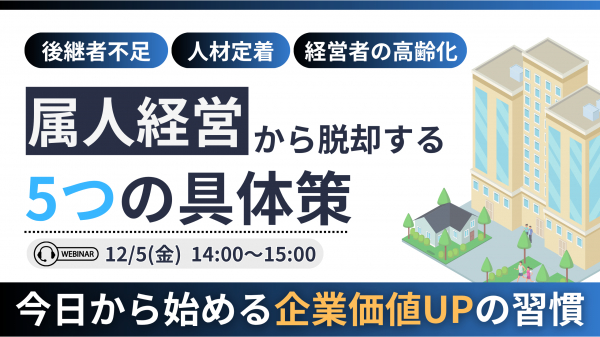 株式会社ライトアップ(本社:東京都渋谷区、代表取締役社長 白石 崇)は、中小企業経営者・後継者を対象にした無料オンラインセミナー「今日から始める『企業価値UPの習慣』~属人経営から脱却する5つの具体策~」を2025年12月5日(金)に開催いたします。