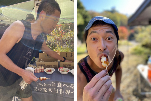そんな中、明日香野は「よもぎあんこ餅」「大人の団子(みたらし、三色・よもぎ使用)」「わらび大福」「芋羽二重餅」をエイドステーションで振る舞い、選手の力走を応援いたしました。諦めることなくゴールを目指す選手たちの姿は、不屈の精神そのものでした。