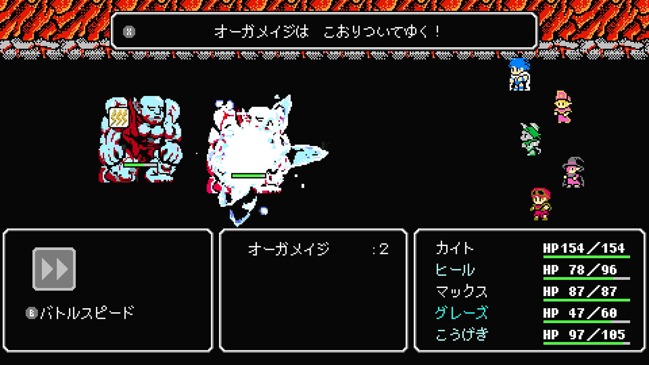シンプルながら戦略性の高いコマンドバトル。サイドビューの戦闘画面で、ドット絵で描かれたキャラクター達が戦うぞ!