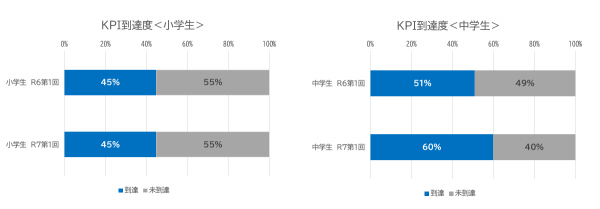 一方、今回の中学生のKPI到達度は令和6年度 第1回検定の到達度よりも9ポイントアップし60%となりました。