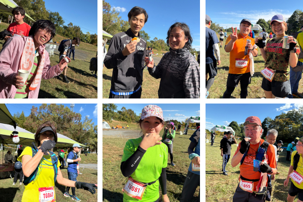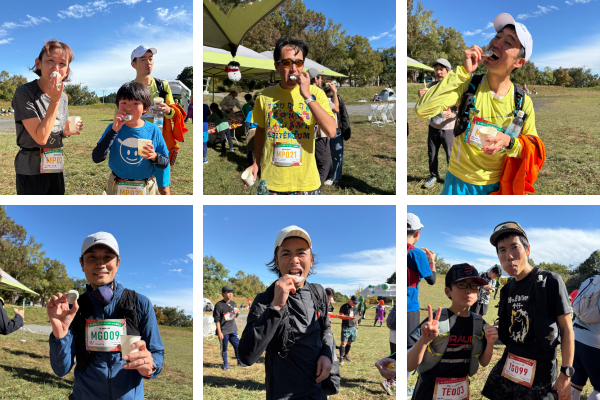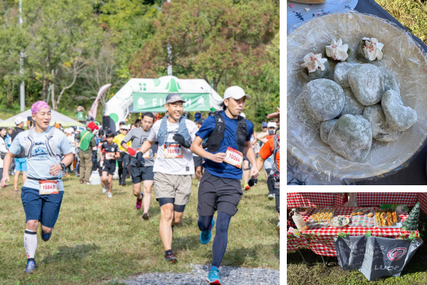 明日香野はエイドステーションで「よもぎあんこ餅」を振る舞い、ゴールを目指すランナーを応援しました。初めてトレイルランのレースに参加される方も多く、とても楽しそうに走られていました。