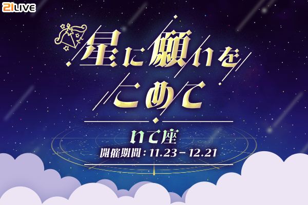 株式会社エムアンドティーティー(本社:沖縄県北谷町、代表取締役:井藤 三知子)が運営するエンターテイメント・ライブ配信アプリ【21LIVE(ニーイチライブ)】URL: https://21.live では、11月23日(日)から12月21日(日)にかけて『星に願いをこめて』を開催いたします。