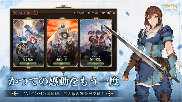 『英雄伝説ガガーブトリロジー』は、日本ファルコム史上、最も代表的な名作シリーズのひとつであり、スマートフォン版では『英雄伝説III 白き魔女』『英雄伝説IV 朱紅い雫』『英雄伝説V 海の檻歌』のストーリーを完全収録しています。プレイヤーはチャプターごとに物語を自由に切り替え、運命が交錯する壮大なドラマを体験可能。シナリオは日本ファルコムによる公式監修のもと、複数の分岐ルートが楽しめるダンジョンも追加され、往年のファンから新規プレイヤーの探索欲をそそる作品になっています。