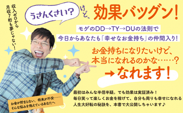 ■『お金持ちスイッチ、押しちゃう? 誰でも楽しくラク~に稼げる成幸法則♪』著者森瀬繁智(モゲ)