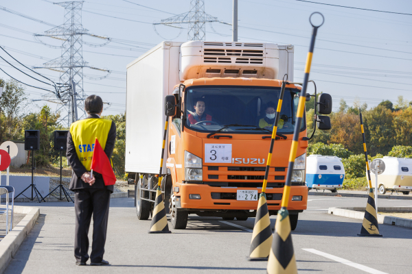 第8回となる今回は、全国のグループ各社のドライバーから選抜された33名(1.5トン部門18名、4トン部門15名)が出場し、応援者などを含めた参加者は計240名となりました。競技では、安全・無事故運転を主体とした姿勢が求められ、学科・実技・点検の3種目で知識と技術を競い合いました。