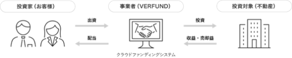 当社では、不動産クラウドファンディングサービスの『VERFUND(以下「ベルファンド」)』を提供しています。『ベルファンド』は、資産運用を希望する投資家の皆さまから資金を募って不動産の運用を行い、その運用益や売却益を投資家の皆さまに分配するサービスとなります。