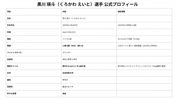 「team VASILEUS、第9代Krushバンタム級王者黒川瑛斗です。