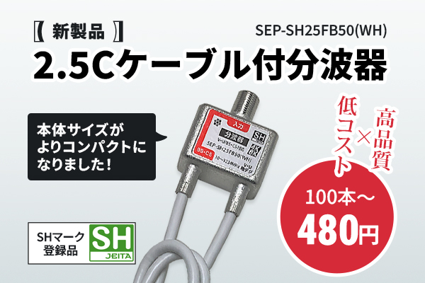 この度、2.5Cケーブル付分波器を新発売いたしました。