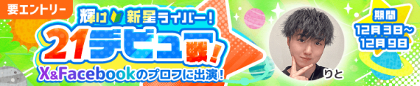 12月3日(水)より、エントリー開始日時点で、初配信から60日以内の新人ライバーだけが参加できる『輝け新星ライバー!21デビュー戦!』が始まります!