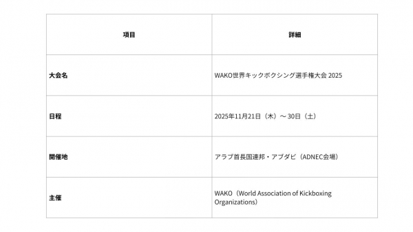 【WAKO世界キックボクシング選手権大会 2025 概要】