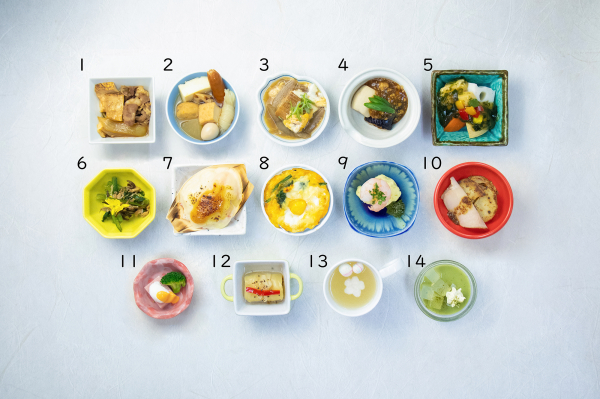 冬の定番『おでん』には、銀座和牛ラボで使用している黄身の濃いブランド卵「龍のたまご」を使用。さらに、『穴子と牛蒡の卵とじ~山椒風味~』や『白身魚と筍のわかめあんかけ』など、総料理長こだわりの出汁が香る、ほっとする味わいの和惣菜を取り揃えました。