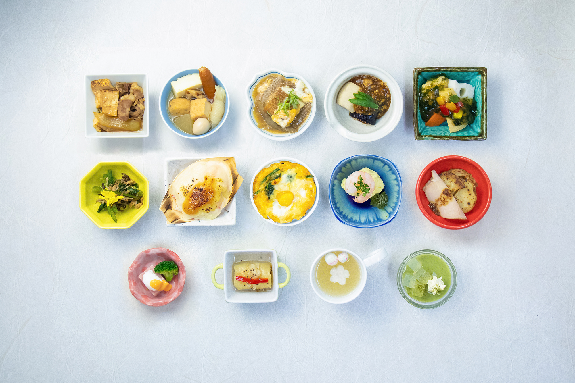 当店では、一流料亭出身の総料理長が持つ技術と知識を注ぎ込み、職人が厨房で丁寧に手作りした和洋の小鉢をご提供します。9升トレイにセッティングすれば、彩り鮮やかでバランスの取れた食事を楽しめる、これまでになかったビュッフェスタイルです。これからも朝食の研究を進め、”わざわざ食べに行きたくなる朝食”・”日本一の東京の朝食” を目指して参ります。