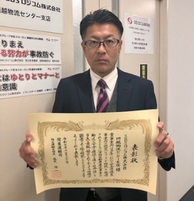 受賞にあたり、SBSロジコム 野田物流センター支店長の尾﨑は、「無事故で1日の業務を完了することは、車両を動かす支店の使命です。運転手はもちろん、支店管理者も同じ気持ちで取り組み、今後もルールを守り無事故の日を継続してまいります」と述べました。
