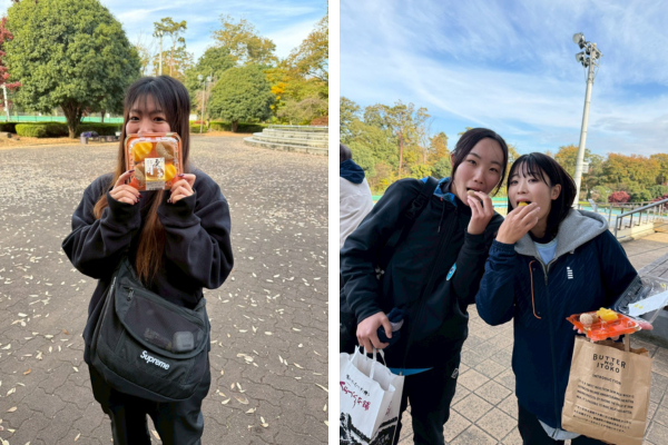明日香野は「栗きぶん」をお渡しして、選手の皆さんに糖分を補給していただきました。