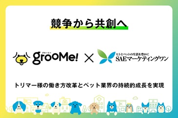 国内最大のトリマー派遣・職業紹介事業「アニフル」を展開するSAEグループの株式会社SAEマーケティングワン(本社:東京都中央区、代表取締役CEO:大野 公嗣、以下「SAEマーケティングワン」)と、出張トリミングマッチングサービス「GrooMe!」を運営する株式会社PIXIS(本社:東京都渋谷区、取締役CSO:平井康晴、以下「PIXIS」)は、ペット領域ならびにトリミング領域における中長期的な戦略的業務連携を開始することを発表いたします。