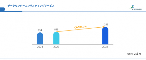 LP Informationの「世界データセンターコンサルティングサービス市場の成長予測2025~2031」(https://www.lpinformation.jp/reports/199898/data-center-consulting-services)によると、2025年から2031年にかけてCAGRは5.7%、2031年には市場規模が12.53億米ドルに達する見通しとなっている。これは、クラウド化・エッジ化・AI・IoTの加速とともにデータセンターの複雑性が高まっている背景と一致しており、単なる機器導入では対処困難な高度設計・運用戦略支援の需要が急速に拡大している証左である。加えて、企業や政府がグリーンITやゼロダウンタイム運用を求める中、省スペース化や冗長化、電源・冷却効率低減が重要性を増し、コンサル領域の範囲も深化している。公共・金融・通信・ヘルスケアなどの業種を横断して、デジタルトランスフォーメーション(DX)推進の“屋台骨”として位置づけられつつある点も見逃せない。
