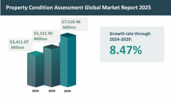 グローバルの不動産コンディションアセスメント市場は、2019 年以降年平均成長率(CAGR)6.30% で成長し、2024 年には約 34.1107 億ドルに達しました。同市場は、2024 年の 34.1107 億ドルから 2029 年には 51.2195 億ドルへ、8.47% の割合で成長すると見込まれています。その後、2029 年から CAGR 7.96% で成長し、2034 年には 75.1046 億ドルに達する見通しです。