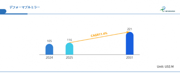 LP Information調査チームの最新レポートである「世界デフォーマブルミラー市場の成長予測2025~2031」(https://www.lpinformation.jp/reports/56092/deformable-mirror)によると、2025年から2031年の予測期間中のCAGRが11.4%で、2031年までにグローバルデフォーマブルミラー市場規模は2.21億米ドルに達すると予測されている。