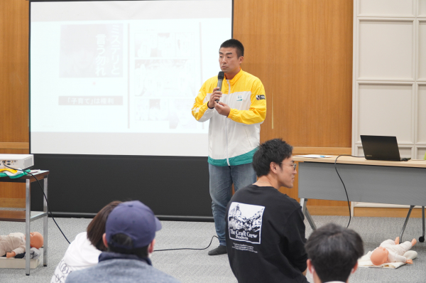 後半は、産婦人科医 津田竜広先生による「赤ちゃんを迎えるパパの役割」についての講座を実施しました。