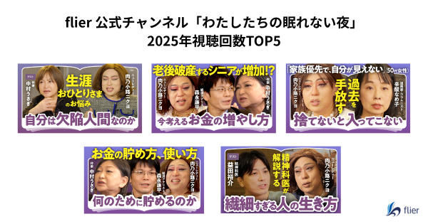 累計会員数128万人を突破した本の要約サービス「flier(フライヤー)」を運営する株式会社フライヤー(本社:東京都千代田区、代表取締役CEO 大賀康史)は、YouTube「flier 公式チャンネル」で2025年に視聴回数の多かった動画の人気ランキングを12月12日(金)に発表しました。