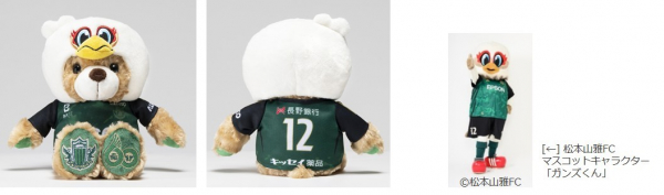 “旅の思い出”としてだけでなく、スポーツ観戦のお供に連れて行きたくなるようなご当地ベアを作りたいという想いから、Jリーグクラブマスコットとのコラボレーションがスタート。これまで、13クラブのマスコットとのコラボベアが誕生しています。このたび、14クラブ目として、松本山雅FCの「ガンズくん」のご当地ベアを発売することになりました。今年クラブ創設60周年を記念したご当地ベアです。