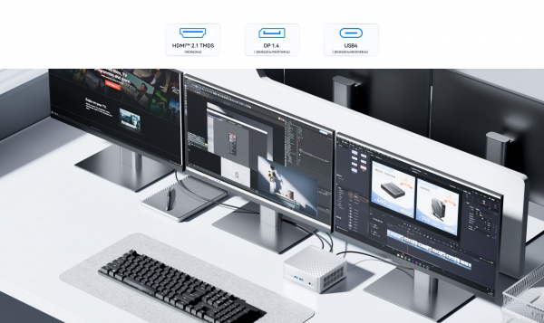 最大8K@60HZ/4K@144Hzの映像出力に対応し、生産性向上やマルチウィンドウ作業に最適です。