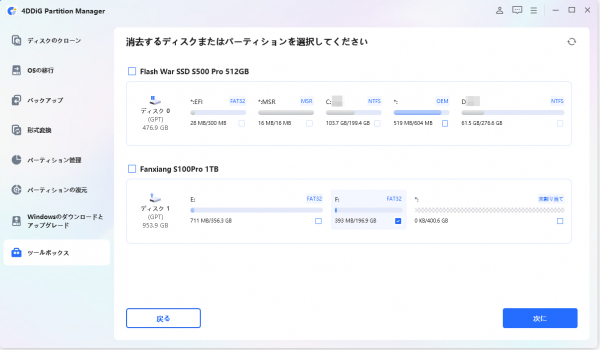4DDiG Partition Managerを使ってデータ消去手順は以下の通りです。