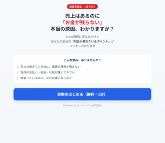 オージージー合同会社(本社:東京都渋谷区、代表:高野容一)は、中小企業経営者向けに、売上・利益・手元資金の状態を簡易的に整理できる無料診断ツール「経営の『お金が残らない原因』診断」を公開しました。