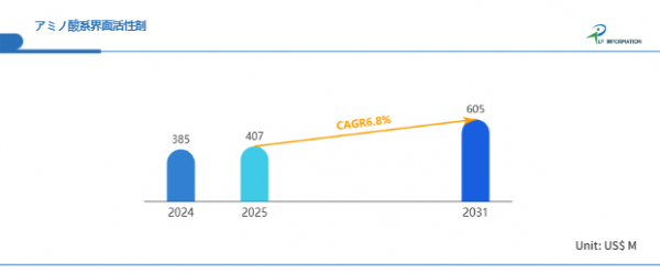 LP Information調査チームの最新レポートである「世界アミノ酸系界面活性剤市場の成長予測2026~2032」(https://www.lpinformation.jp/reports/580872/amino-acid-surfactants)によると、2025年から2031年の予測期間中のCAGRが6.8%で、2031年までにグローバルアミノ酸系界面活性剤市場規模は6.05億米ドルに達すると予測されている。成長の背景には、クリーンビューティーやヴィーガン処方などの新しい価値観の定着、環境配慮型化学品への規制強化、消費者の敏感肌ニーズの高まりなどが挙げられる。加えて、多国籍化粧品企業やODMメーカーが原料ポートフォリオを再編し、アミノ酸系界面活性剤を中心に据えるケースが増えている。コロナ禍以降、衛生関連需要が高度化し、洗浄剤やケア製品が「安全」「優しさ」「エコ」をキーワードとする方向へ進んだことも市場の底上げにつながった。さらに、製造技術の進化によりコストカーブが徐々に改善し、大量生産が可能になったことで、ミドルレンジ製品群への採用も加速している。こうした需要、規制、技術の三要素が相乗効果を生み、アミノ酸系界面活性剤市場は中長期的な成長を持続する地合いを確立したのである。